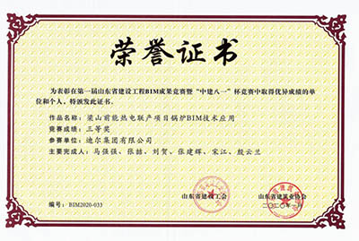 由集團BIM中心參與完成的堿回收鍋爐BIM技術應用、梁山前能熱電聯產項目鍋爐BIM技術應用,經市建筑業協會審核、推薦,經專家評審、公開答辯和競賽組委會會議審定,最終分別榮獲此次競賽一等獎、三等獎。