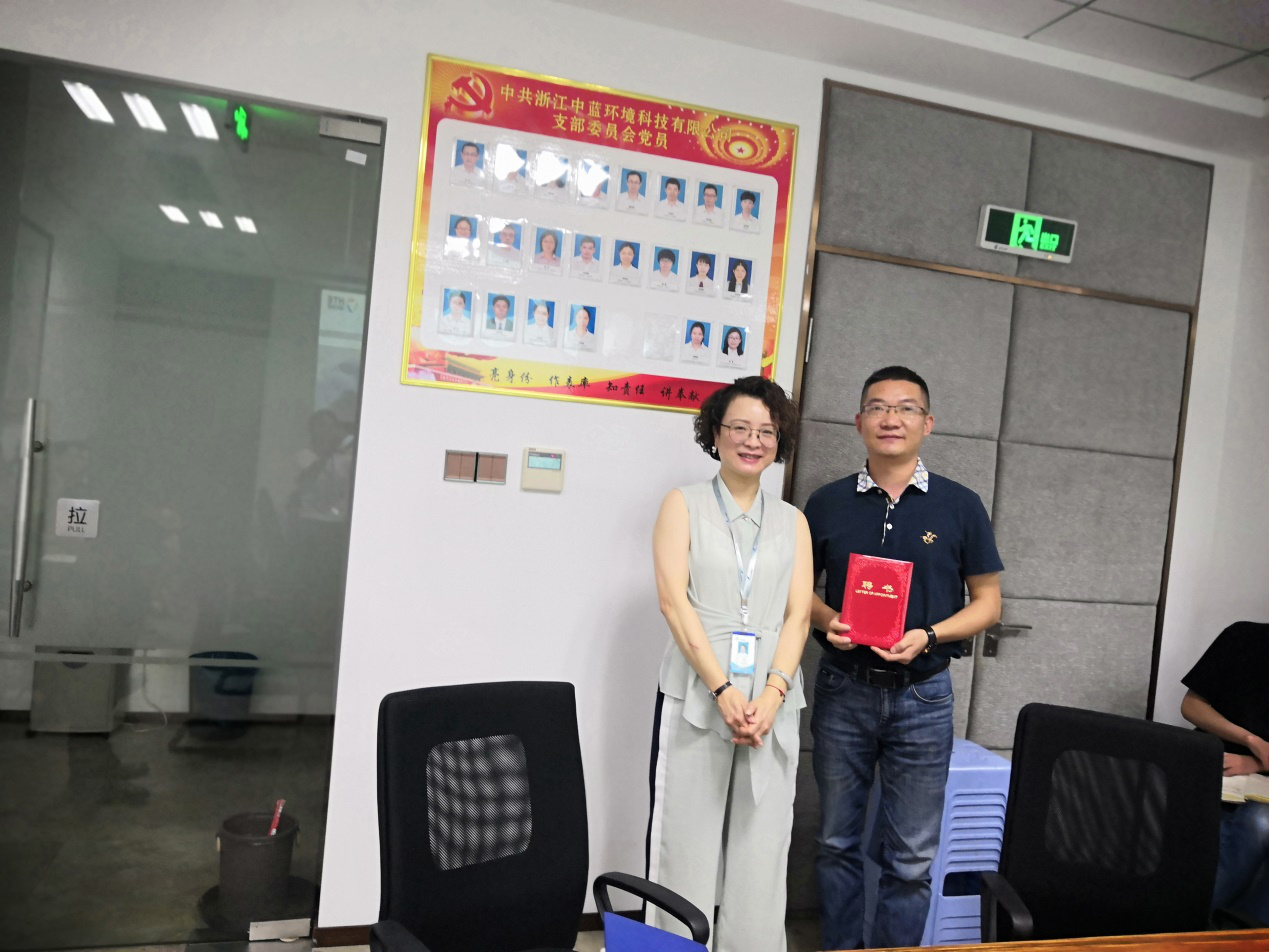 本次培訓會邀請到的嘉賓是來自浙江海拓環境技術有限公司的周杰副總經理,周總從事環保行業十幾年,具有豐富的污水處理設計及工程管理經驗。培訓會開始前,由李總代表中藍公司正式聘請周杰為高級技術顧問。